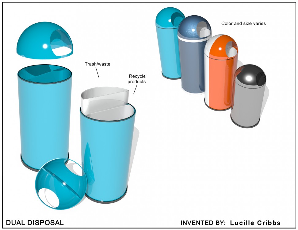 An innovative new twist and enhancement on a widely used household accessory, the Dual Disposal, has been developed by inventor Lucille Cribbs of Evergreen Park, Illinois. The invention’s unique design provides its users with a highly versatile trash receptacle.
